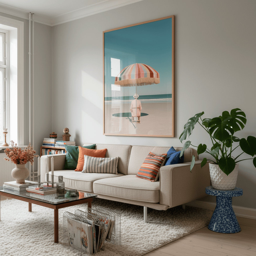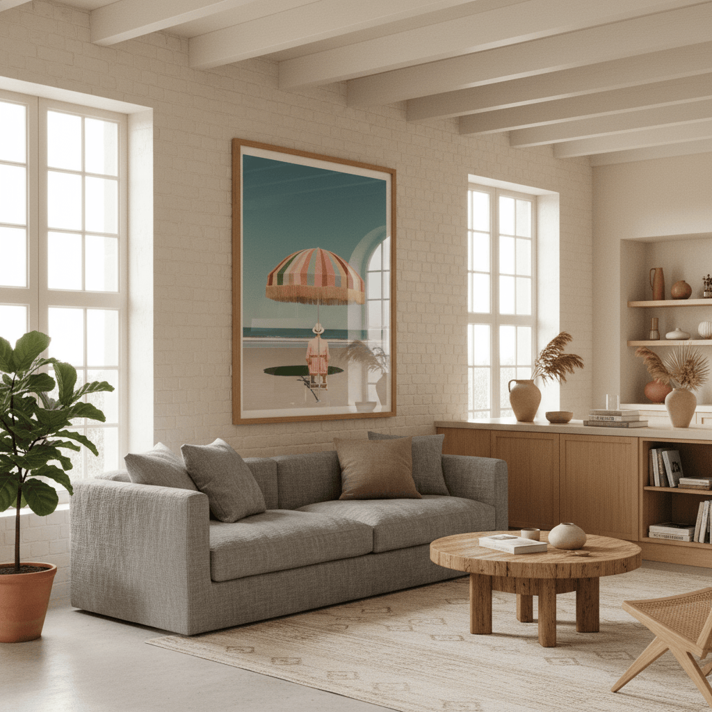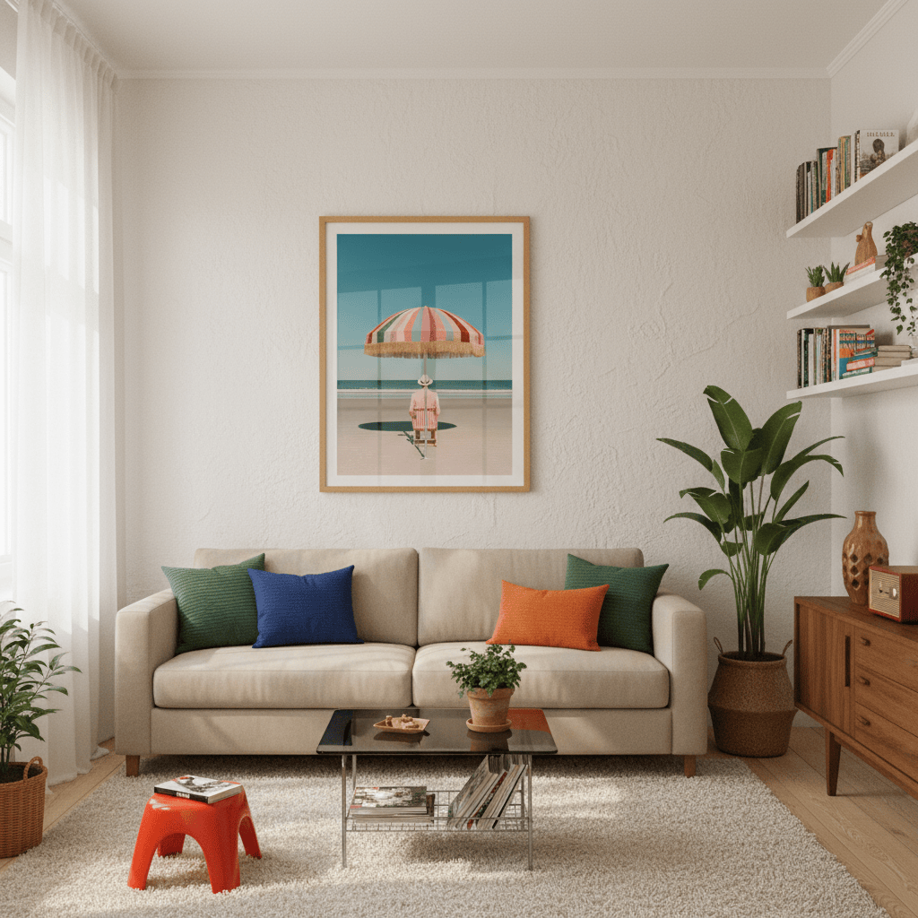 El marco es más que un simple complemento, es una extensión de la obra. Algunos prefieren la elegancia discreta de un diseño en negro, blanco o madera natural, mientras que otros apuestan por marcos con colores vibrantes, texturas o patrones que aportan personalidad. No hay una fórmula correcta, solo la que mejor conecte contigo.