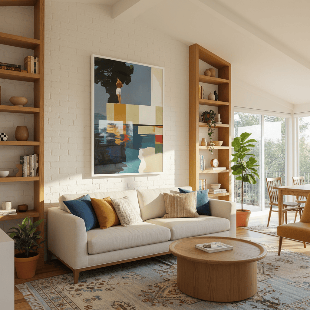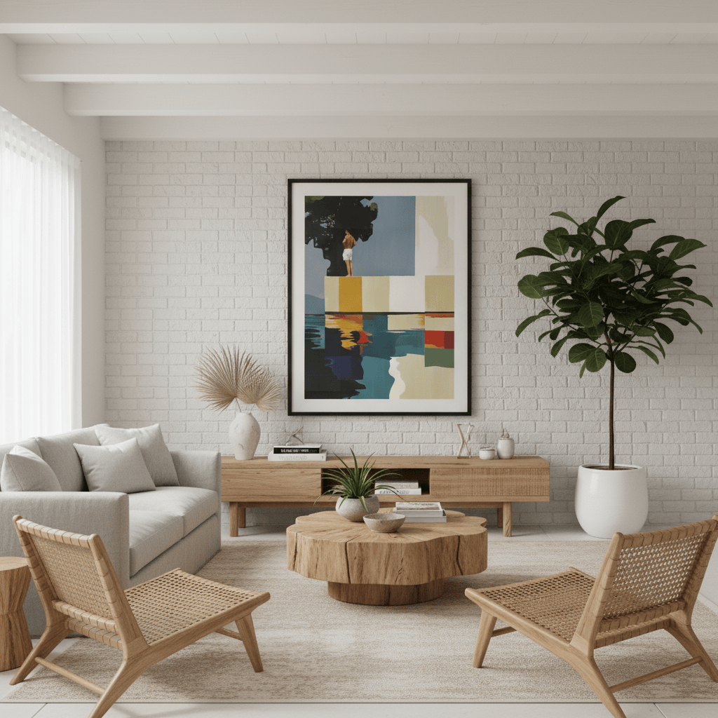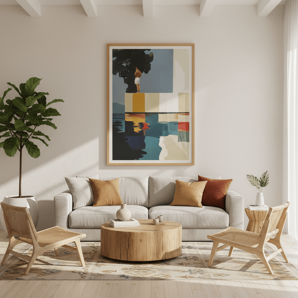El marco es más que un simple complemento, es una extensión de la obra. Algunos prefieren la elegancia discreta de un diseño en negro, blanco o madera natural, mientras que otros apuestan por marcos con colores vibrantes, texturas o patrones que aportan personalidad. No hay una fórmula correcta, solo la que mejor conecte contigo.