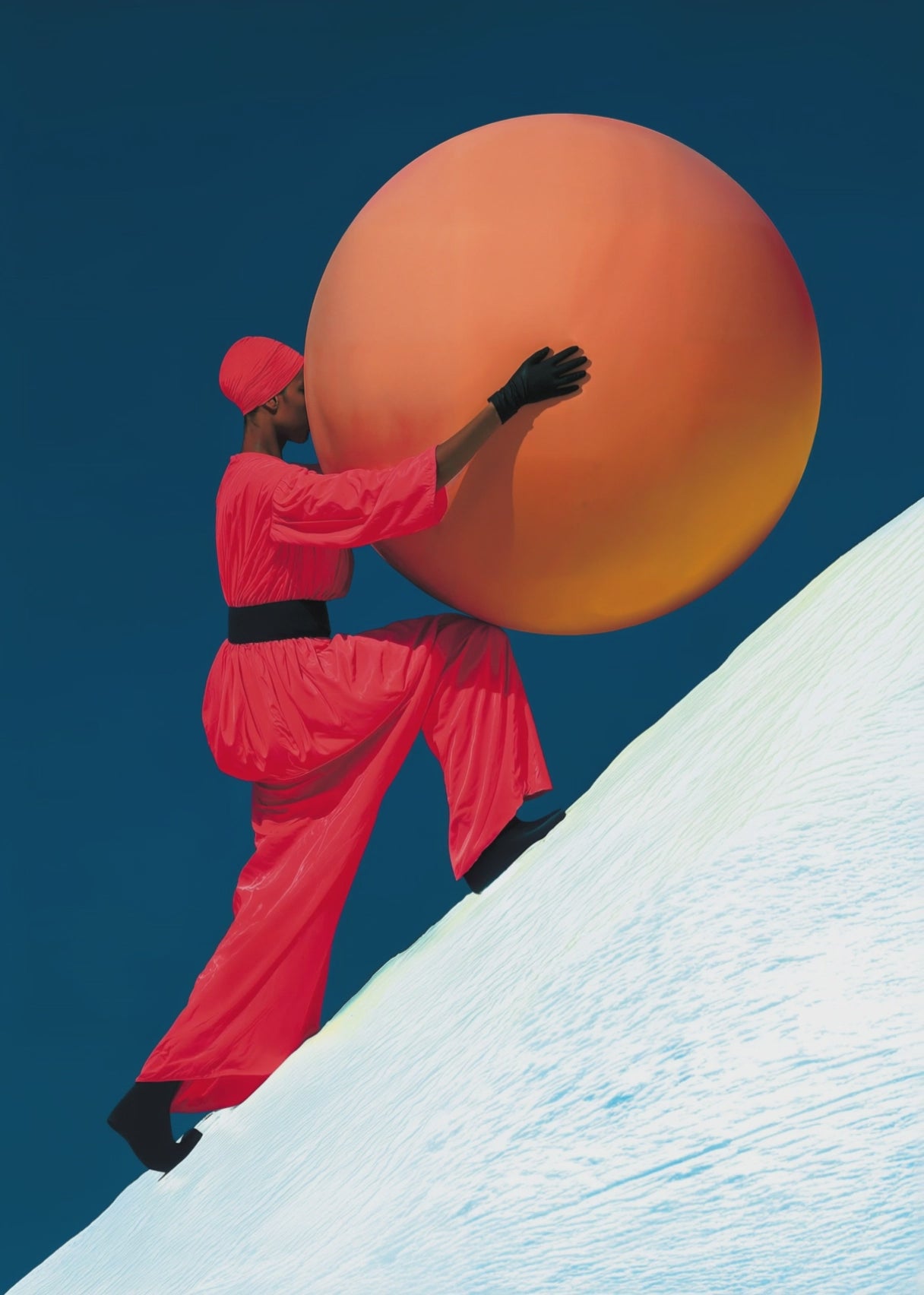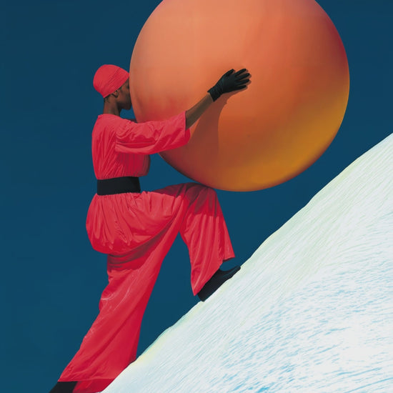 I was immediately drawn to this piece — not just for the bold colors or the clean composition, but for what it says. It reminded me of The Myth of Sisyphus, not the ancient punishment version, but the reinterpretation by Albert Camus — where meaning isn’t in the result, but in the act itself.