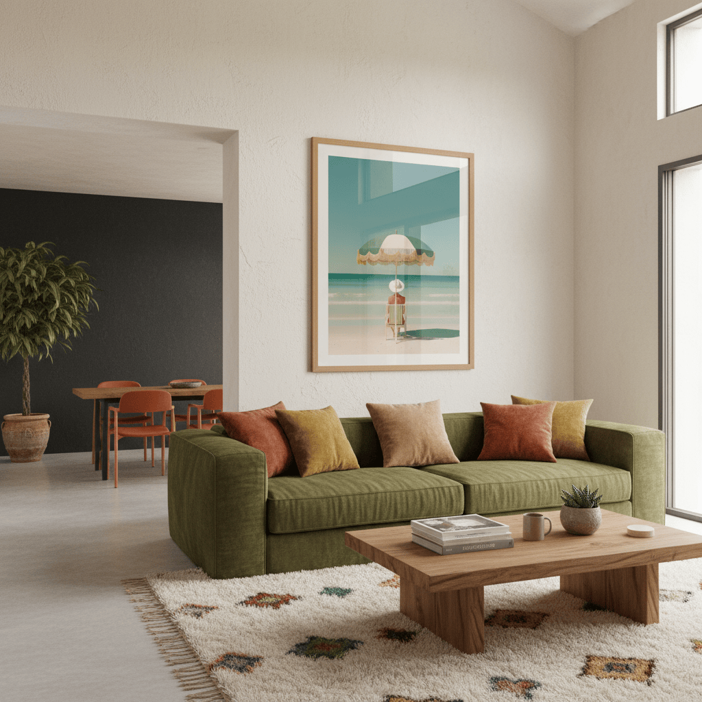 El marco es más que un simple complemento, es una extensión de la obra. Algunos prefieren la elegancia discreta de un diseño en negro, blanco o madera natural, mientras que otros apuestan por marcos con colores vibrantes, texturas o patrones que aportan personalidad. No hay una fórmula correcta, solo la que mejor conecte contigo.